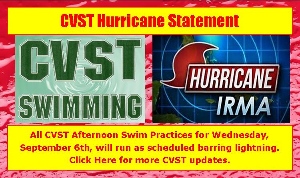 CVST Hurricane Irma Information Page Dear CVST Families, All of Florida is facing a threat more serious than at any time in recent times. Our CVST families and our CVST Coaches will need time to prepare their homes and families for the possibly devastating effects of Hurricane Irma. Because of this, CVST be monitoring the situation along with the Carrollwood Country Club and will close down both the Country Club and the Swim Team at a certain point. Our area may not feel the effects of the...