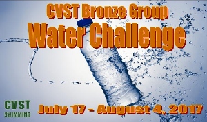 Announcing the CVST Bronze Group Water Bottle Challenge Attention All CVST Bronze Groupers: Staying hydrated while exercizing is very important, especially here in hot Tampa! Even when not exercizing it is important to be drinking water and staying hydrated. While swimming we sweat a lot, but don't always realize it because we are already wet, especially in the summer. That is why Coach Jen and Coach Meredith are challenging you, the CVST Bronze Groupers, to bring a bottle of water to practice every day and drink it...