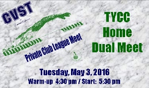 Psych Sheet Available for Tuesday's PCL Meet with TYCC The Psych Sheet is now available for tomorrow night's PCL Duel Meet with the Tampa Yacht Club. Warm-ups for all CVST swimmers is at 4:30 pm and the meet will start at 5:30 pm. The entire event should be over by 8:00 pm barring any delays. Parents, remember we need to supply the timers for this meet, so please sign-up by tonight. We are using 9 lanes, sowe will need 18 timers in all. Click Here to go...