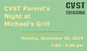 CVST Parent's Holiday Cocktail Party at Michael's Grill It's time for our CVST Parents to have their own event, so we are having a post Holiday get together at Michael's Grill, located at 11720 N Dale Mabry Hwy, Tampa, FL 33618, on Monday, December 30th, from 7:00-9:00pm. We hope you will all attend it should be a great night for all of our CVST Parents and Coaches to get together and have some fun away from the pool. CVST will also provide some hors d'oeuvres during the evening and Michael's...