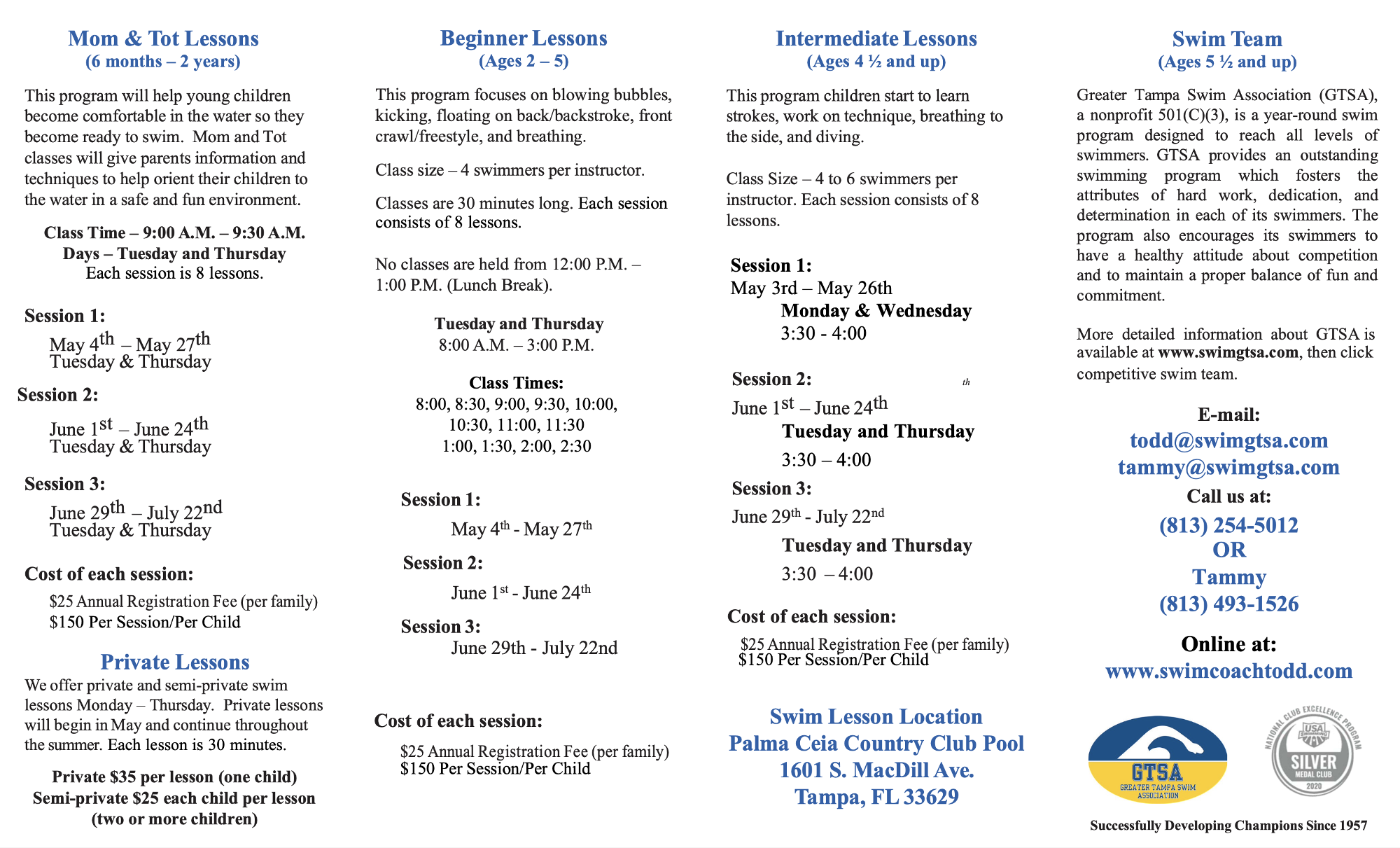 2021 Spring & Summer Swim Lesson Dates @ Palma Ceia Country Club