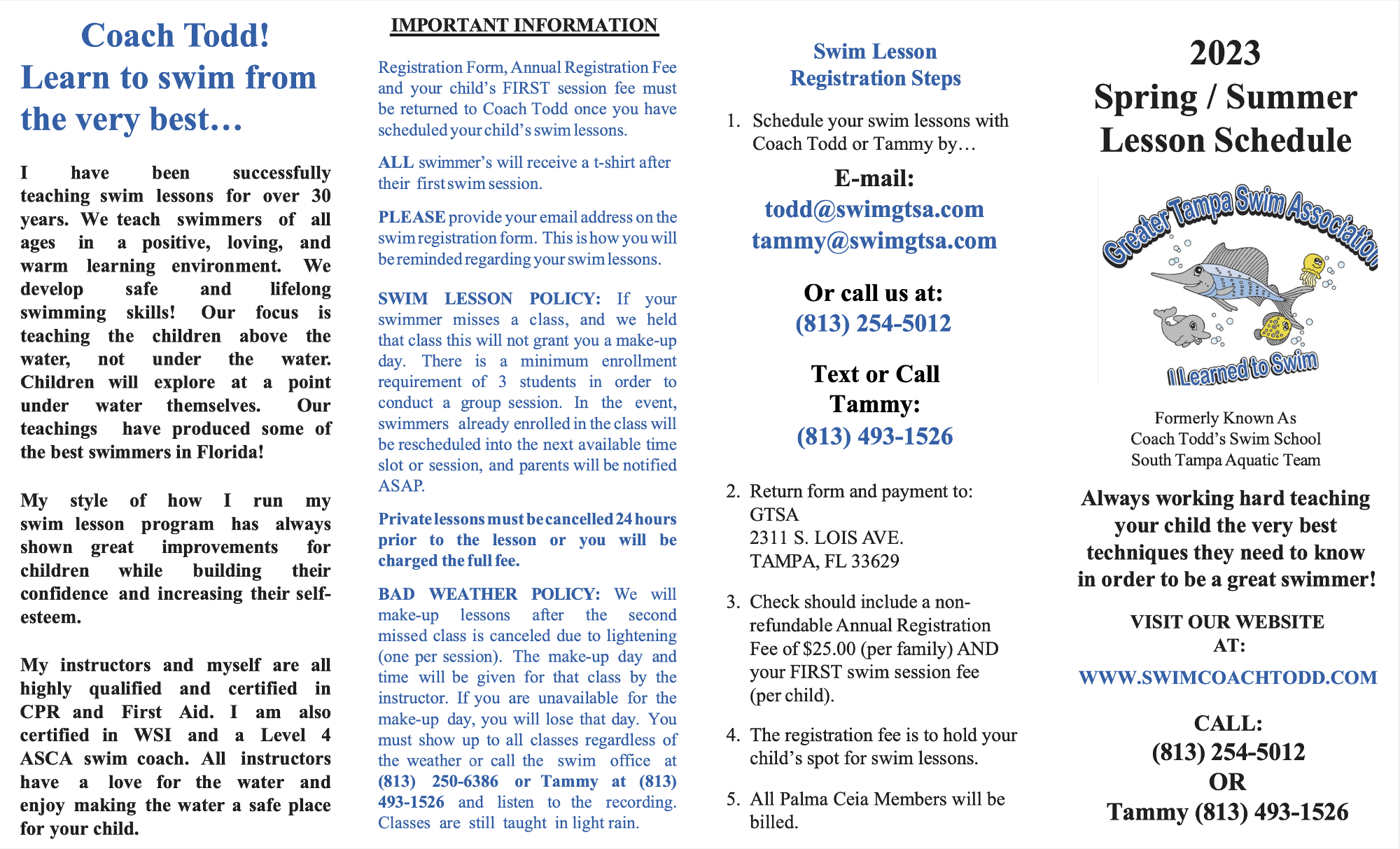 You can now register your child/children for our 2023 Spring & Summer Swim Lessons.
