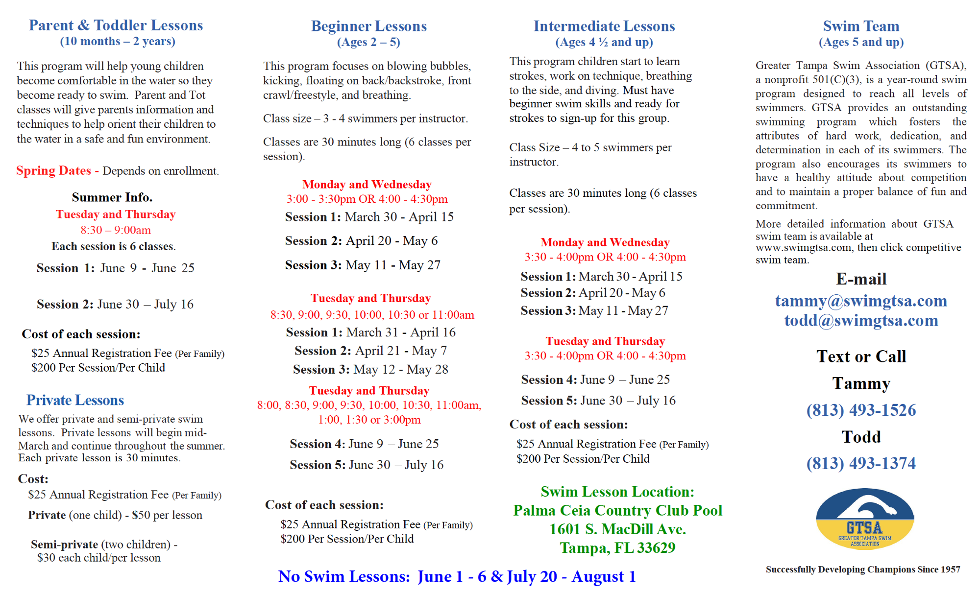 You can now register your child/children for Spring & Summer Swim Lessons.