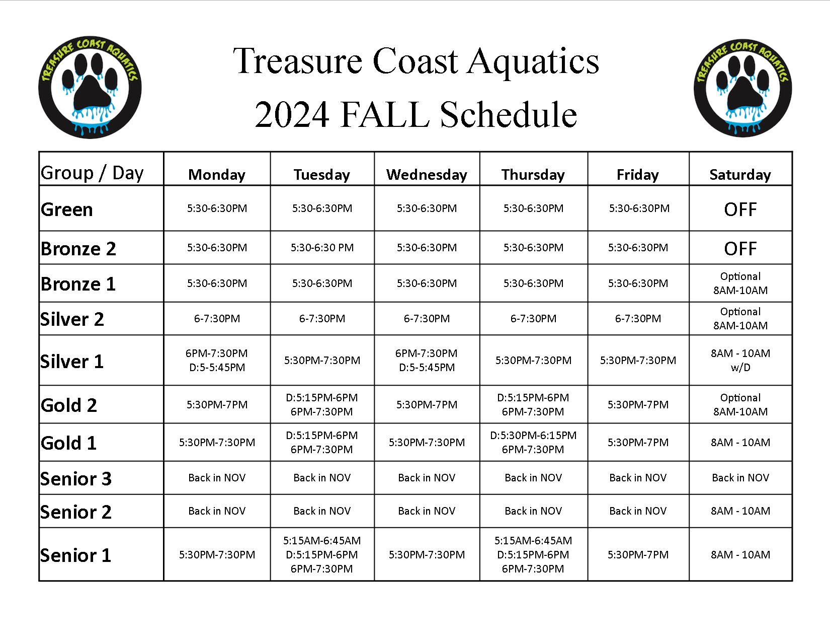 CURRENT PRACTICE SCHEDULE *UPDATED 8/6/24*
