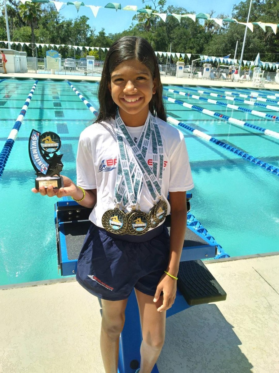 Mai Perez (10) won the high point trophy and several medals at the Hydro4 Fall Classic swim meet this weekend. Mai also broke a few TMSC records. Way to go, Mai!