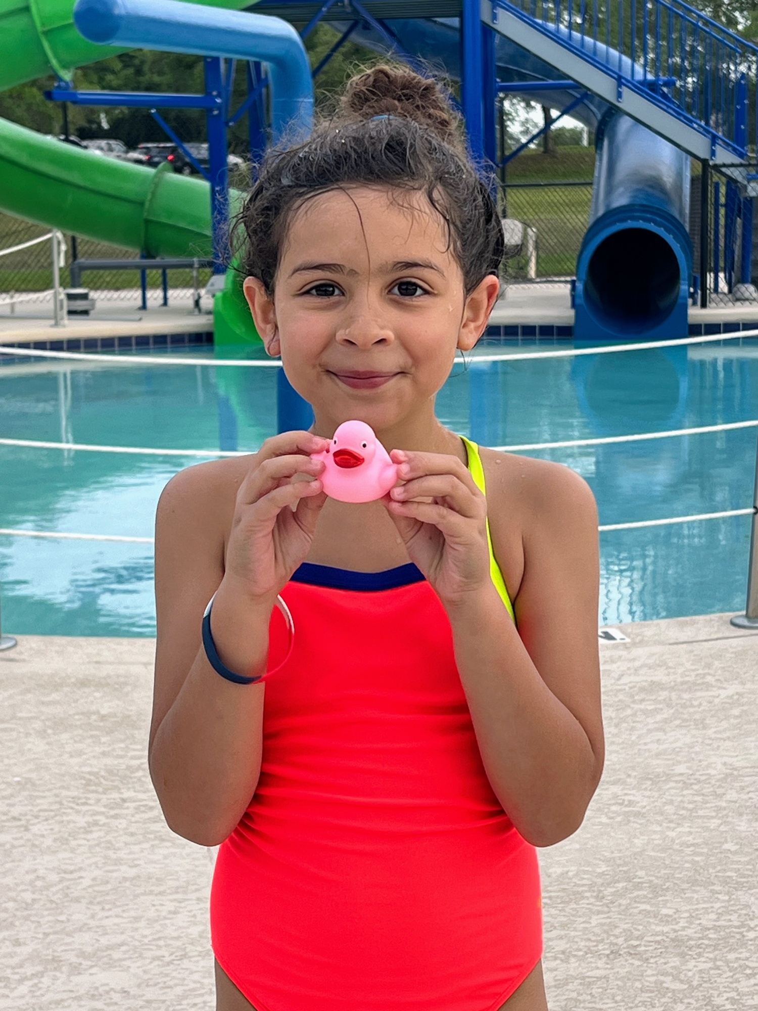 Zaria Taylor has been chosen as April's Swimmer of the Month! Zaria was chosen for her willingness to learn new things and to help her fellow teammates. Zaria swims in the developmental group and attends First Assembly Christian School. She loves swimming the most, but she also likes to hula hoop, draw, and ride her bike. Her favorite food is chicken and her favorite song is 'Home' from the movie Alvin and the Chipmunks: The Road Chip. Her favorite movie is Descendants. Zaria's goal in life is to have fun. Congratulations Zaria!