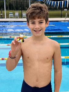 Brad Burns has been selected as our December Swimmer of the Month! Brad was chosen for his recommittment to the sport of swimming, and his overall performance lately at practice and at swim meets. Brad attends Osceola Middle School. Outside of swimming, Brad likes to play baseball. His favorite food is mac and cheese, and he likes to watch Tom and Jerry on tv. Brad's goal is to become a Major League Baseball catcher for the Boston Red Sox.