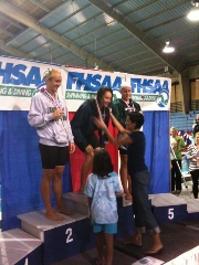 Molly DuBrasky won the 200 Free with a 1:48.34 (All-American Automatic), and the 500 Free with a 4:45.77 (All-American Automatic) to finish her high school swimming career. Molly has now won 5 state High School Titles. Her win in the Girls 500 Free is GCST's 5th straight win in the event. Kyle Snew closed out his high school career with an exciting runner-up finish coming from 4th place on the last length of the 200 IM to touch the wall in 2nd place with a 1:53.92 (All-American Consideration) and a personal best time. Kyle won the Consol final of the Boys 500 Free with a 4:40.69. Courtney DeVeny had an outstanding 7th place finish in the 100 Back with a 58.75. Courtney finished 10th in the 200 IM with a 2:10.87. Blake Woodrow finished 14th in the Boys 500 Free with a 4:51.54.