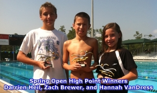 GCST swimmers finished the 2011 GCST Spring Open with 6 High Point Winners. Hannah VanDress won the 10 & Under Girls HP award, Zach Brewer won the 10 & Under Boys HP award, Darrien Heil won the 11-12 Boys HP award, Courtney DeVeny won the 13-14 Girls HP award, Blake Woodrow won the 13-14 Boys HP award, and Kyle Marshall won the Senior Boys HP award.