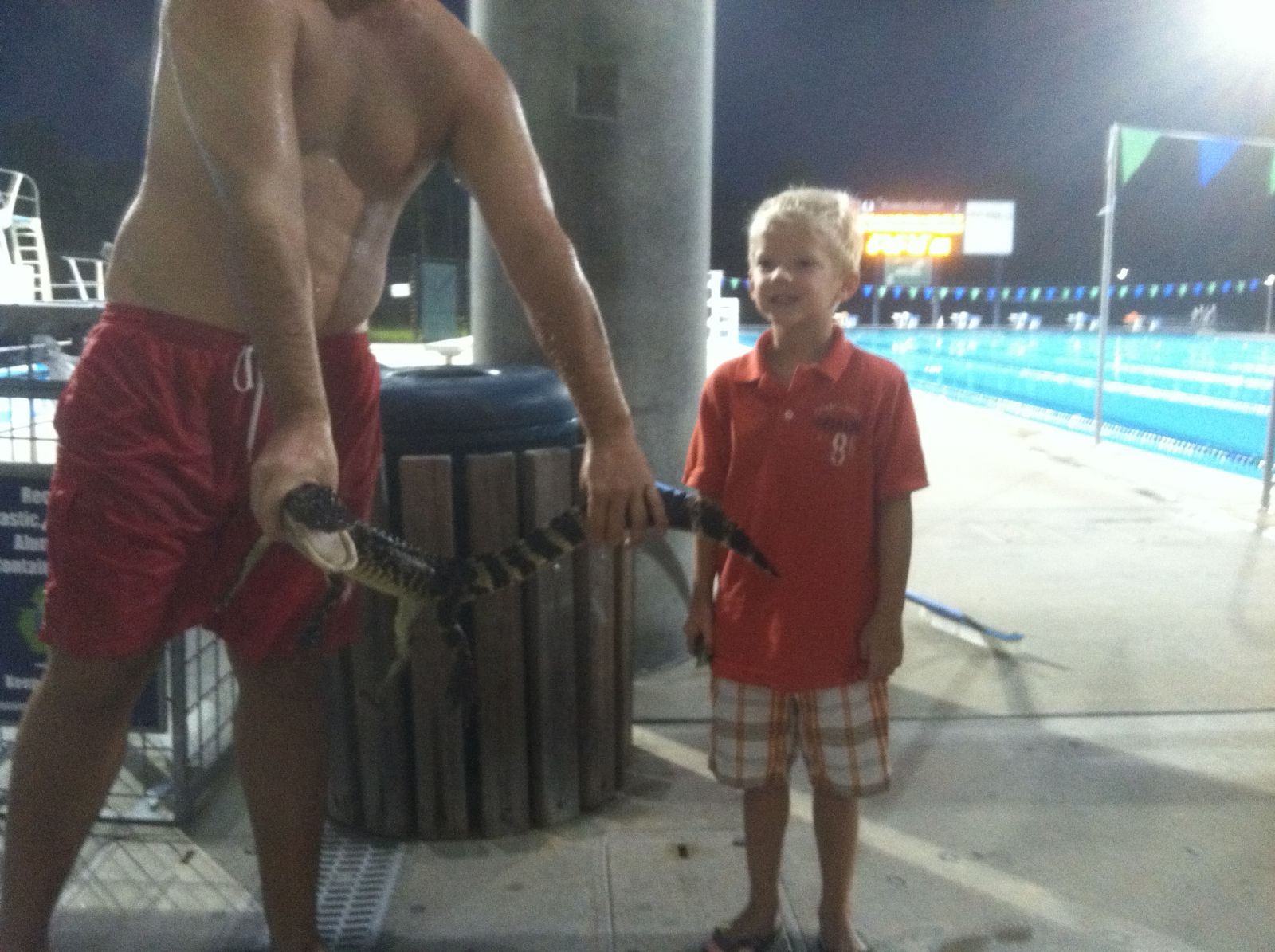 An alligator got into FGCU this morning to get in great workout with GCST. He just couldn't keep up with us. One of the guards had to get in and catch it by hand and then handed it to coach Don until he could get out and eject the offending reptile from the facility.
