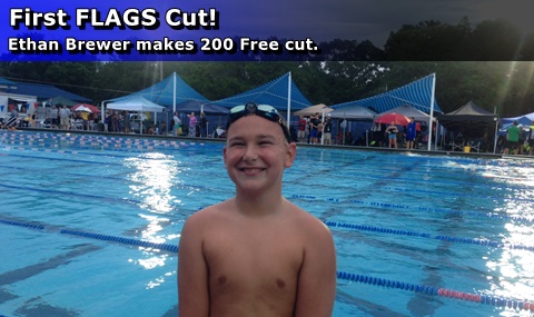 Ethan Brewer made his first FLAGS cut in the 10 & Under Boys 200 Free with a 2:48.54.