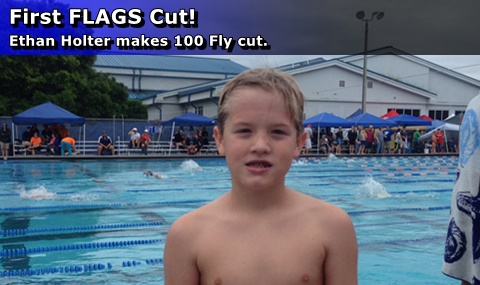 Ethan Holter made his first FLAGS cut in the 10 & Under Boys 100 Fly with a 1:35.91.