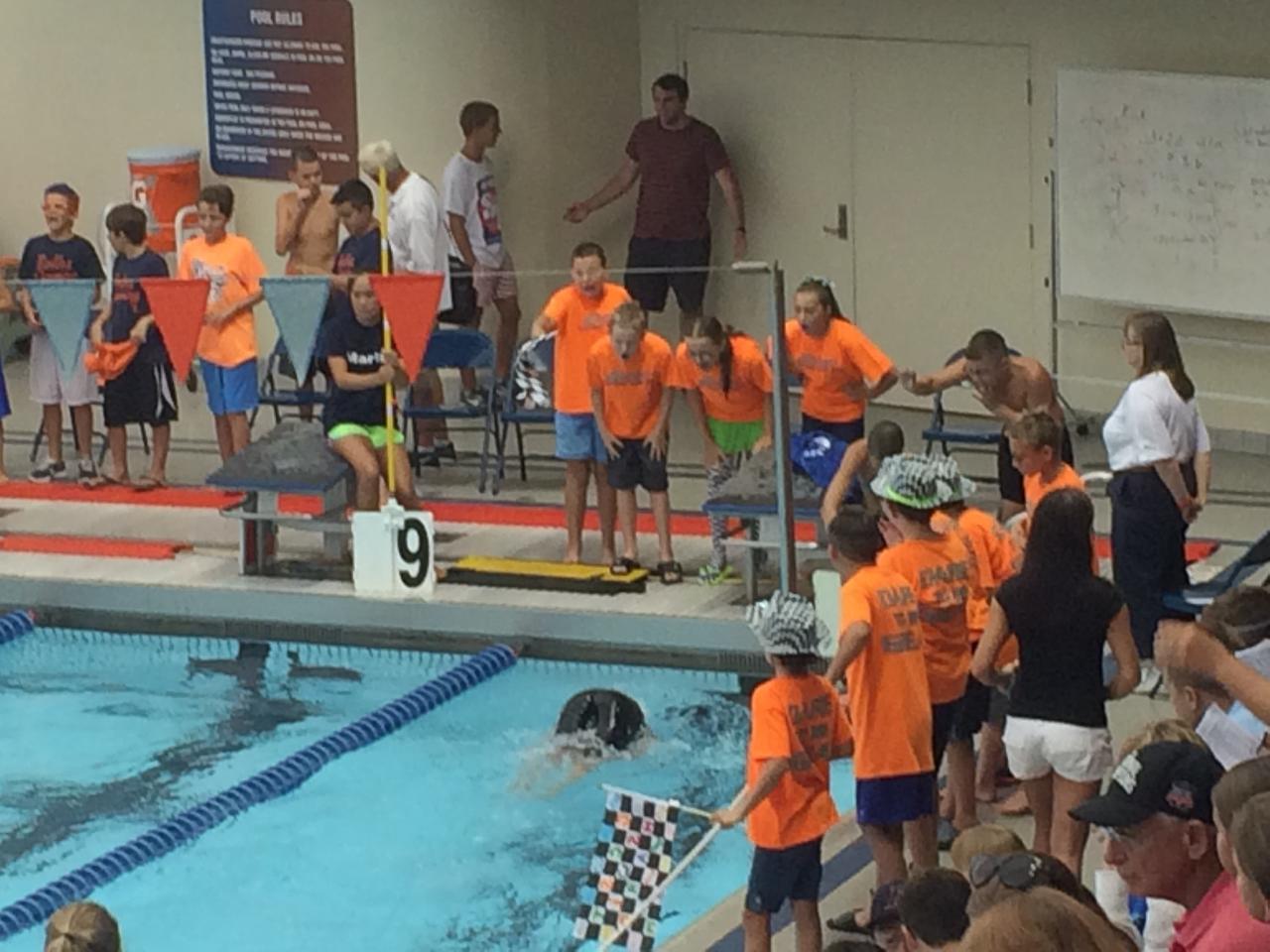 Kelsey Swartout 13th 10 & under girls 100 Fly - 1:24.37 (.40 drop), and 13th 200 Free - 2:38.94 (5.18 drop).