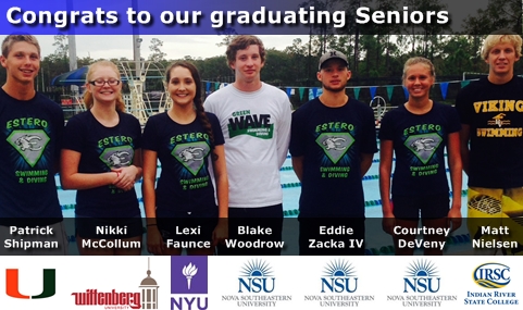 7 GCST senior swimmers are graduating with the Class of 2014. Attending college this fall on scholarships are: Patrick Shipman - University of Miami Nikki McCollum - Whitenburg University Lexi Faunce - New York University Blake Woodrow - Nova Southeastern University Eddie Zacka IV - Nova Southeastern University Courtney DeVeny - Nova Southeastern University Matt Nielsen - Indian River State College Congratulations to these swimmers on the hard work they did in the classroom, and the pool.