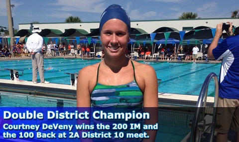 Senior Courtney DeVeny won the 2A District 10 titles in her last high school District meet as she captured the 200 IM (2:08.96), and the 100 Back (59.51) events. Savannah Bowser won the 500 Free (5:00.82) District title, and finished 2nd in the 200 Free (1:55.11). Bean Faunce won the 100 Fly (59.15) to claim her 1st District title, and finished 2nd in the 200 IM (2:12.70). GCST Top 8 finishers: 200 Free - Girls Savannah Bowser 2nd, Lexi Faunce 4th, Nikki McCollum 7th. Boys Eddie Zacka 3rd. 200...