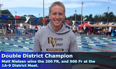 Senior Matt Nielsen won the 200 Free, and the 500 Free to finish his last District with 4 consecutive wins in those events through all 4 years of high school swimming. Matt swam a 1:44.18 in the 200 Free, and a 4:37.36 in the 500 Free. Sandra Baumgardner swam a personal best time in the 50 Free (27.59) to finish 4th, and a PBT in the 100 Fly (1:04.33) to finish 2nd, Elijah Benzon swam a PBT in the 200 Free (1:54.18) to finish 4th, and a PBT in the...