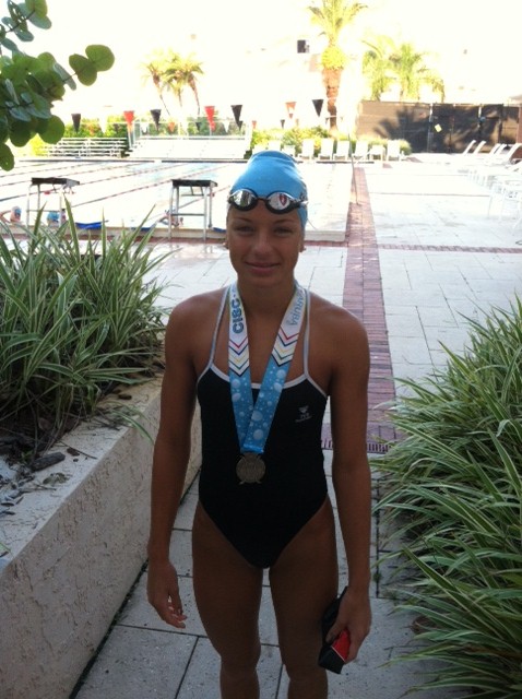 This past week Ally Donahue represented Trinidad and Tobago in the Caribbean Islands Swimming Championships (CISC) in Aruba. She helped her team fall just 13 points short of the eventual champions, Aruba (890-877), even after a controversial relay disqualification. Ally scored the 8th most points of any 15-17 year old female at the meet amassing 28 individual points. She accumulated those points by winning 2 gold medals (100 and 200 Breaststroke), a bronze medal (50 Breaststroke), and a 5th place finish (200 IM). Even during this high training intensity portion of the year Ally was able to obtain personal bests in the 200 Breaststroke and the 200 IM. Ally not only represented Trinidad and Tobago well, but also GTSA. Please be sure to congratulate her when you see her around the pool. Great job Ally!