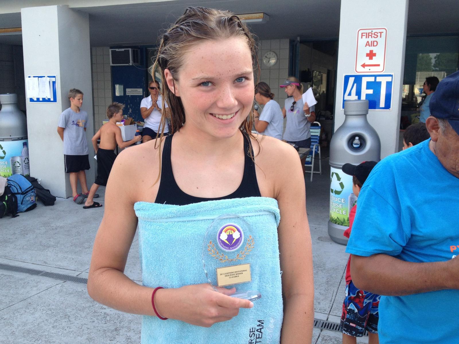 Largo, FL. The three day prelim and finals meet finished with GTSA in 4th place amassing 398.5 points. It was a full team effort with 22 of the 37 GTSA swimmers participating in the meet contributing individual points. Morgan Tankersley accumulated 72 points to earn high point honors for the 13-14 girls.