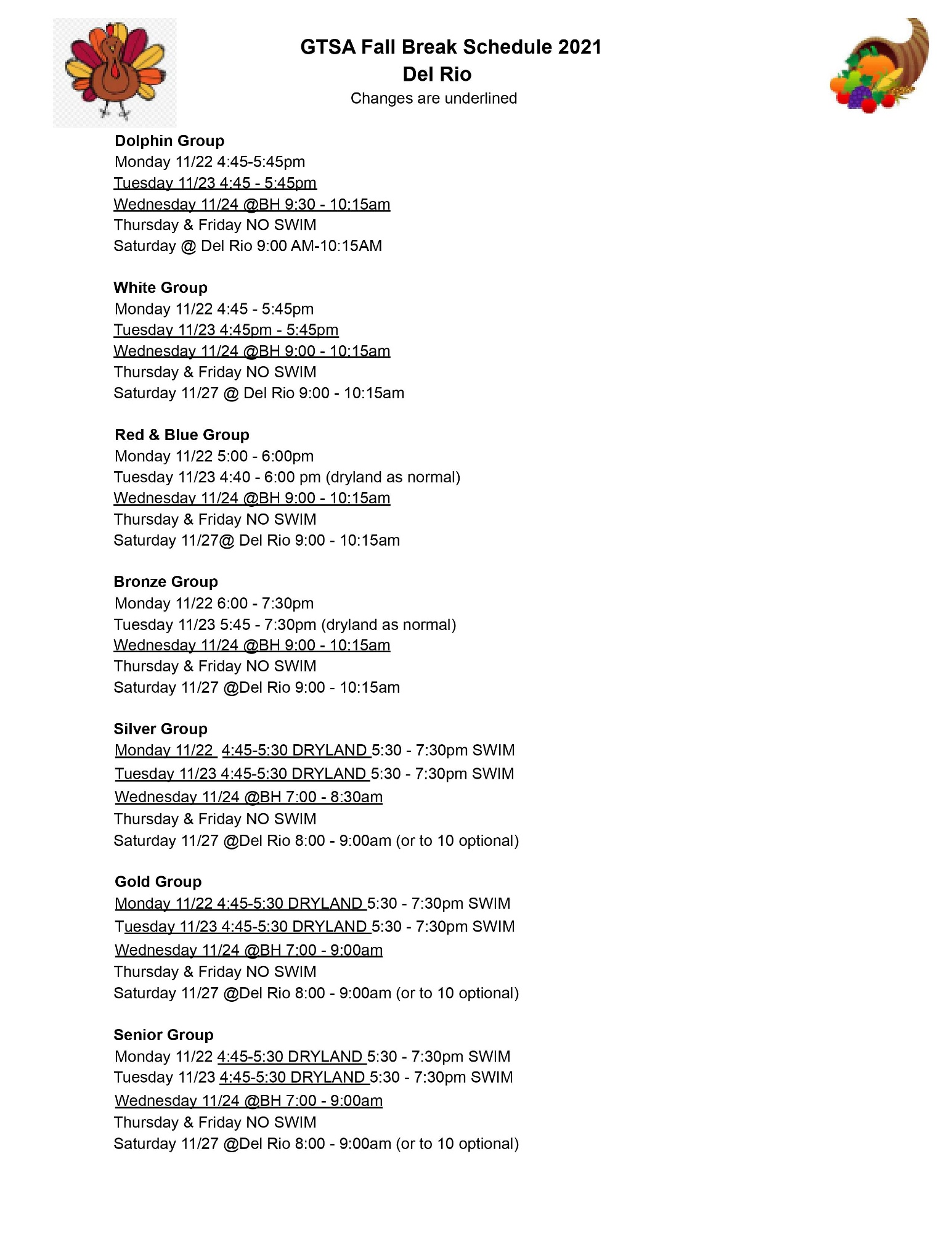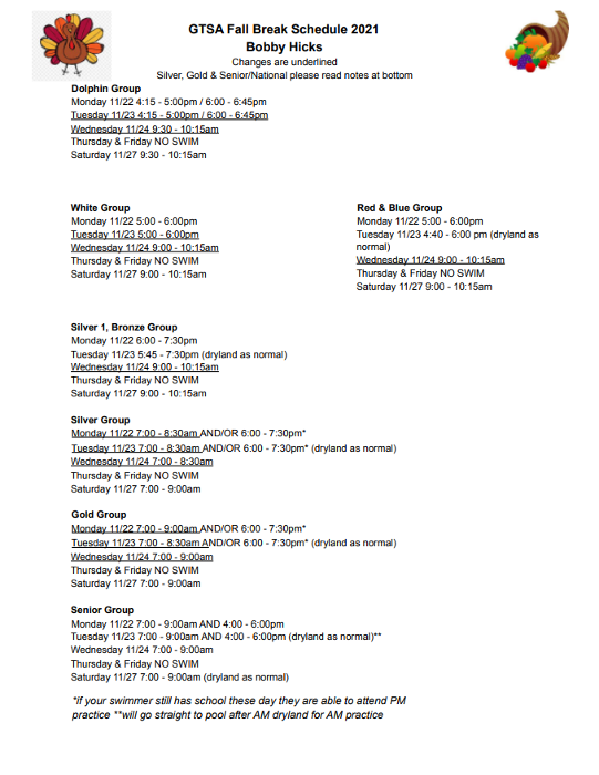 Schedules for Fall Break at Bobby Hicks & Del Rio.