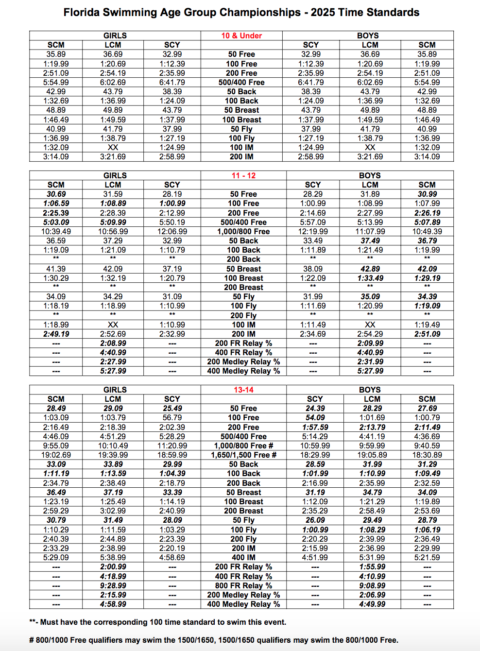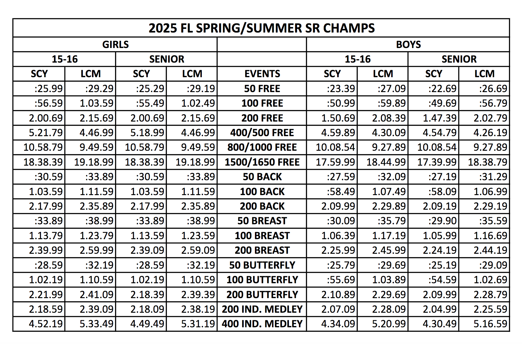 2025 FL Championship Meet Time Standards (FLAGs & SR Champs)