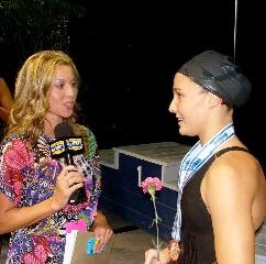 Below: Giorgie is interviewed by 3-time Olympic Gold medalist and Bright House Sports reporter, Brooke Bennett.
