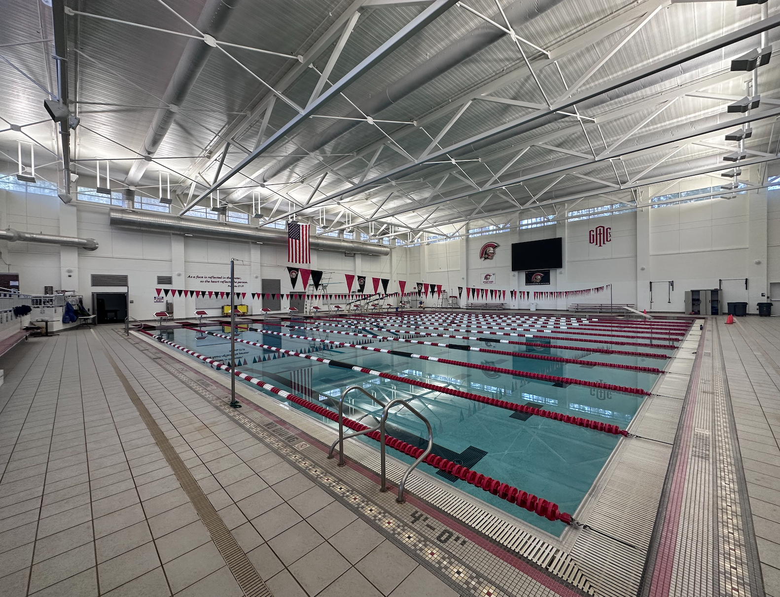 - Our home pool is located on the campus of Greater Atlanta Christian School. We have a state of the art facility that is 25 yards by 25 meters. We have 11 lanes with state of the art wedge blocks for the fastest starts possible. We have a large Video Board that is used for our timing system and meet information but will also be used to broadcast videos for teaching and demonstrations. Our members also have access to the latest training equipment!
