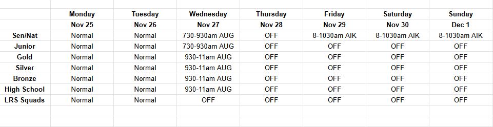 Click HERE for the Travel Squad Thanksgiving practice schedule.