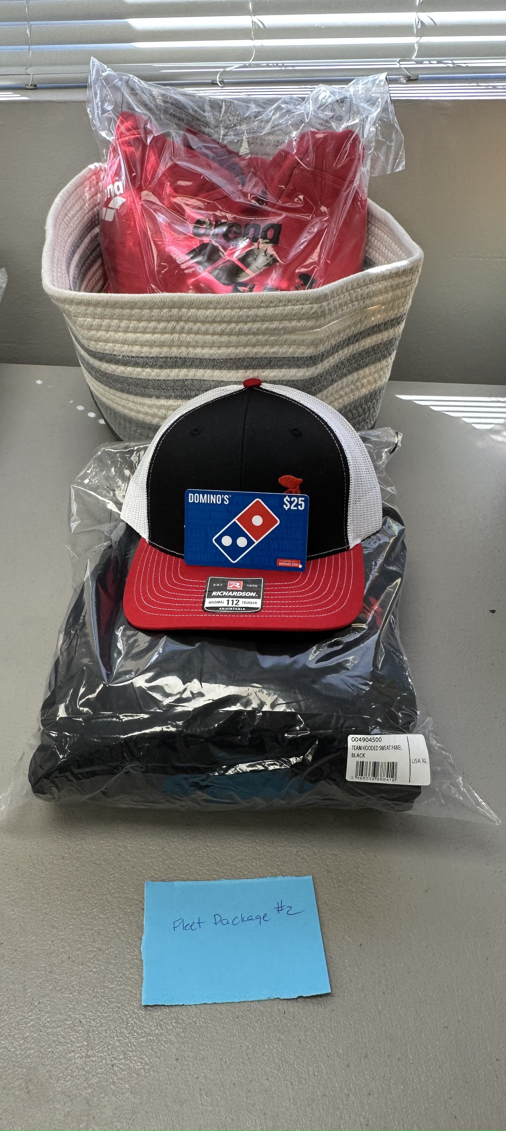Fleet Package #2 - Fleet Trucker Hat, Medium Red Arena Hoodie, XL Black Arena Hoodie & $25 Dominos Gift Card