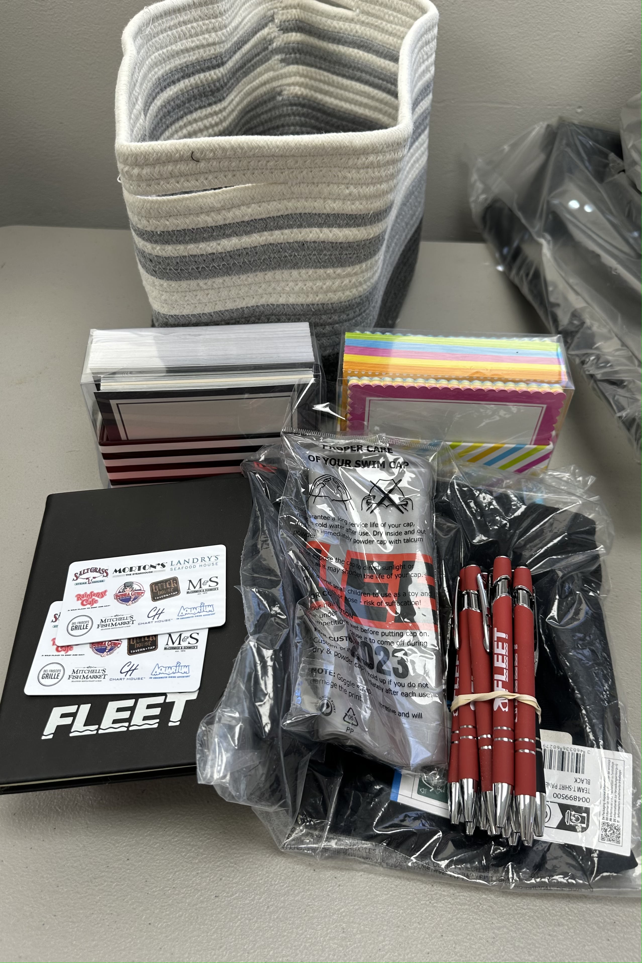 Journal Package - 4x Fleet Journals, 10x Fleet Pens, XL Black Fleet Shirt, Special/Limited Edition Silver Fleet Swim Cap, $50 Landry's Restaurants Gift Card, 2 Sets of Cards & Envelopes