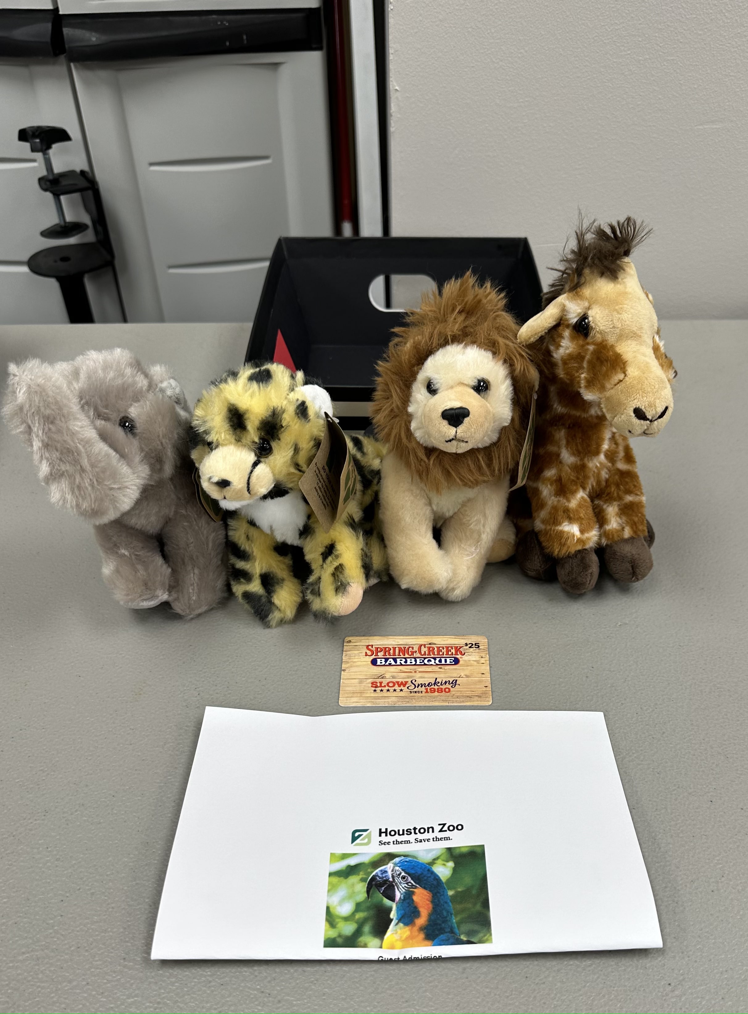 Houston Zoo Package - 6x General Admission Tickets to the Houston Zoo, 4x Small Stuffed Animals, $25 Spring Creek BBQ Gift Card