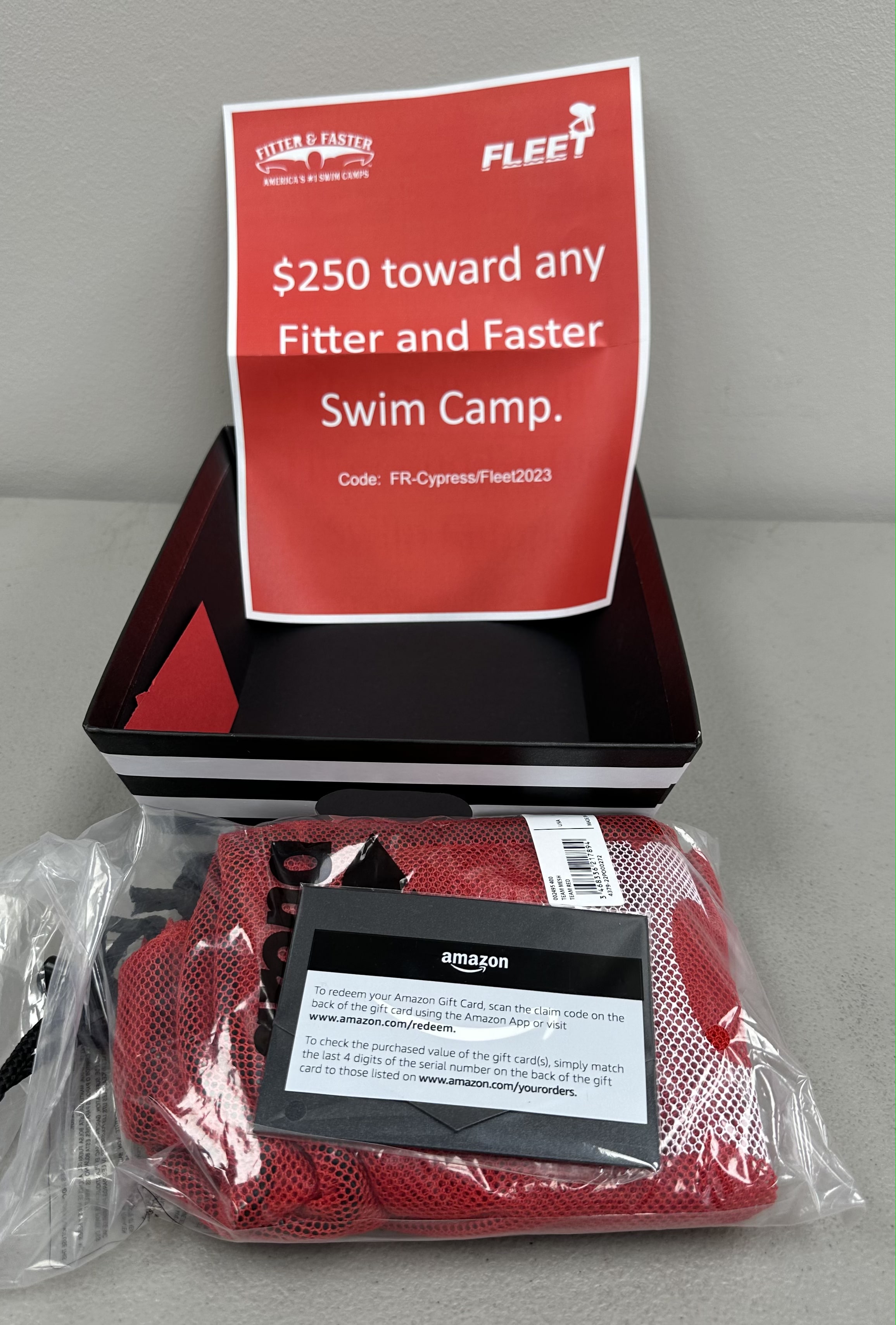 Fitter & Faster Package - $250 Gift Certificate to a Fitter & Faster Camp, Red Arena Mesh Bag & $25 Amazon Gift Card