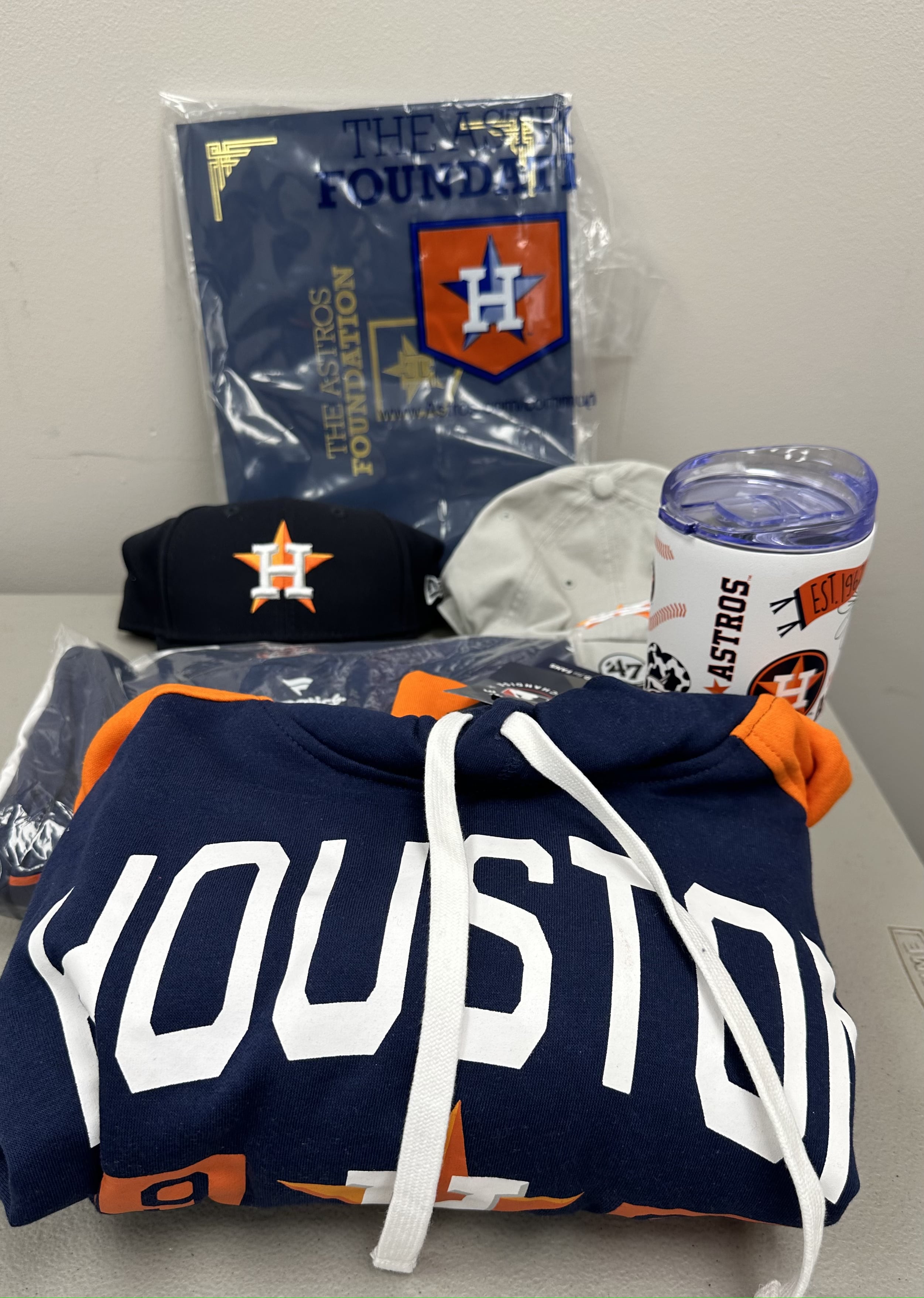 Houston Astros Package - 2x 2024 Tickets to a Houston Astros Game (few restrictions on game selection), 2x Houston Astros Hats, Large Astros Hoodie, 2x Large T-shirts and Tumbler