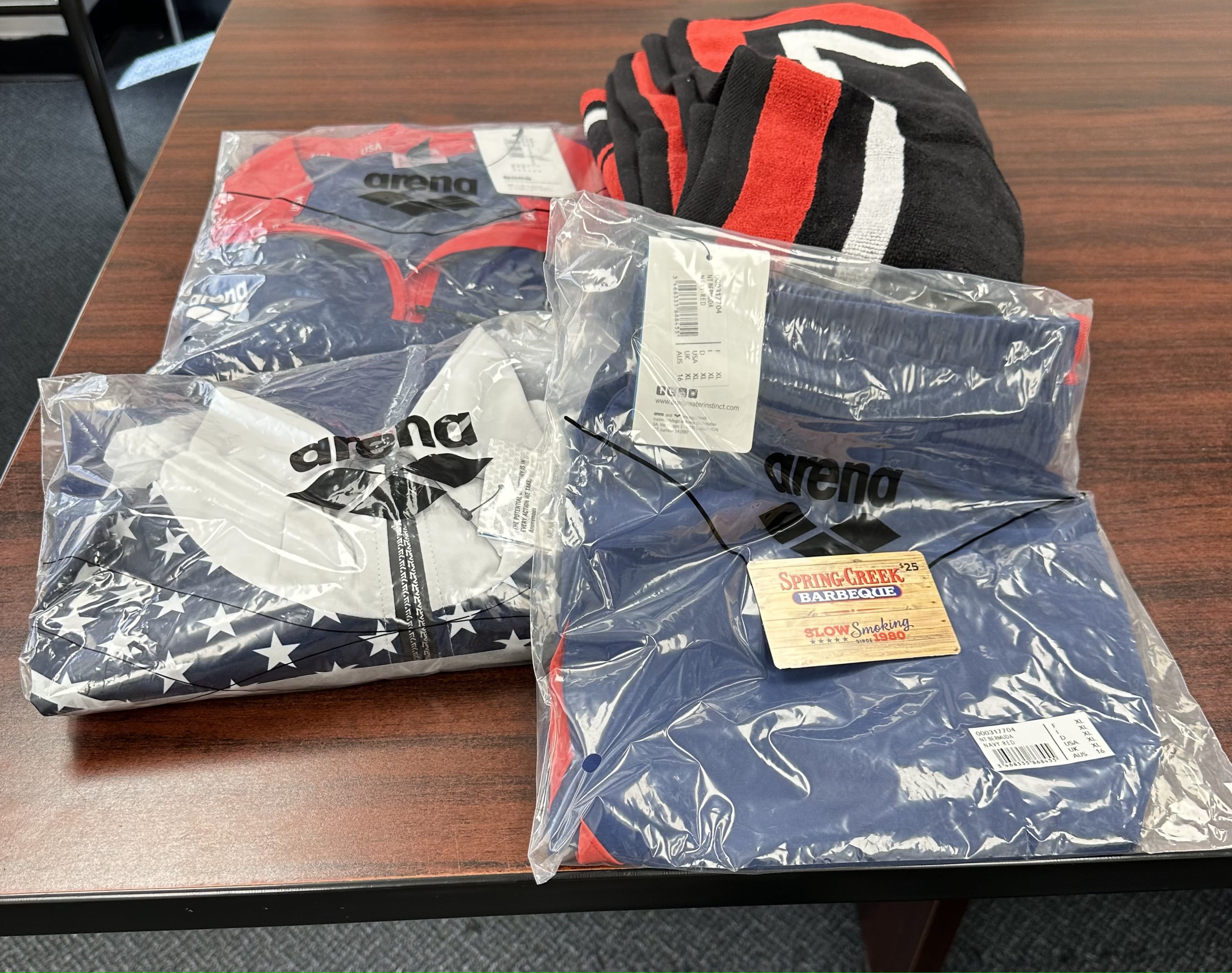 Arena Package #2 - Arena Team USA Gear - Size XL (Jacket, 1/4 Zip, Shorts) & Fleet Towel & $25 Spring Creek BBQ Gift Card