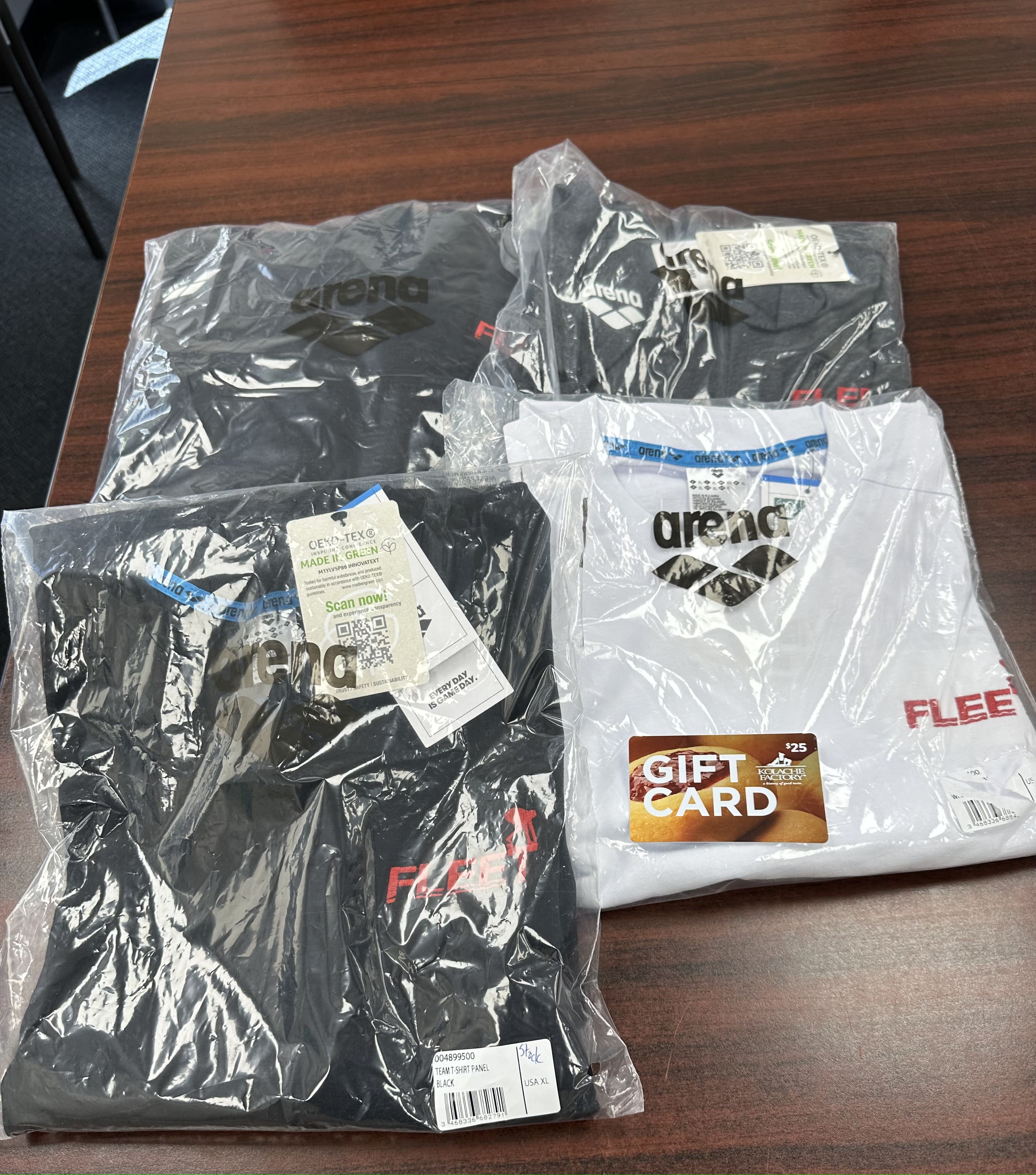 Arena Package #3 - Arena Hoodie - XL, Gray T-Shirt Hoodie - XL, White Arena T-Shirt - XL and Black Arena T-Shirt - XL and $25 Kolache Factory Gift Card