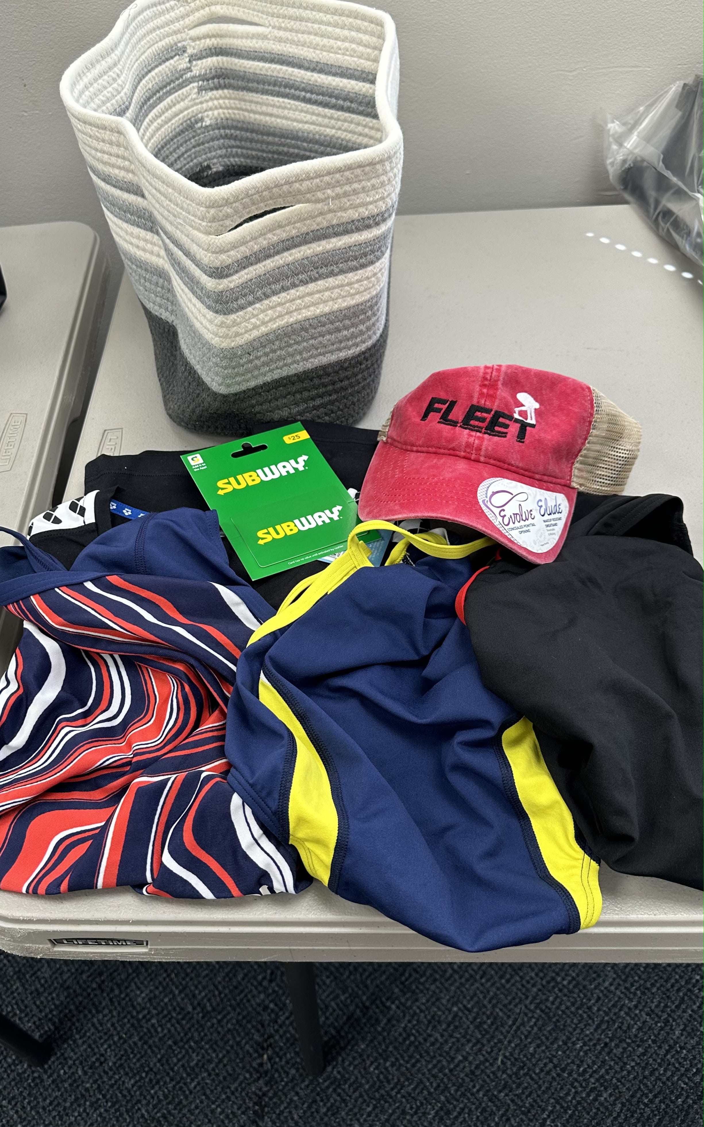 Fleet Package #3 - Fleet Women's Trucker Hat, Black Women's Arena T-Shirt - Size XL, 3x Female Practice Suits - Size 28 & 30, $25 Subway Gift Card, 3x Long Sleeve Fleet T-Shirts or 2x Hoodies