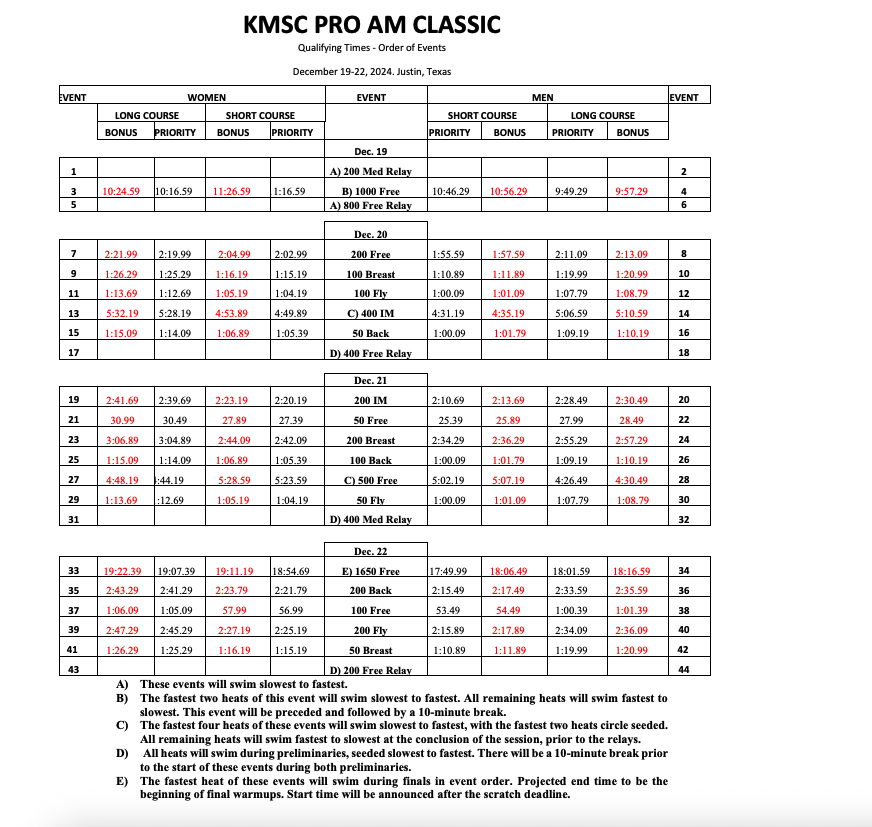 - Dec 18-21 - KMSC Pro-AM (Justin, TX - Seniors Team Trip) - Time Standards