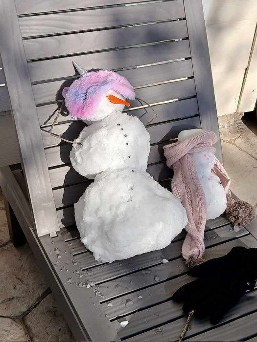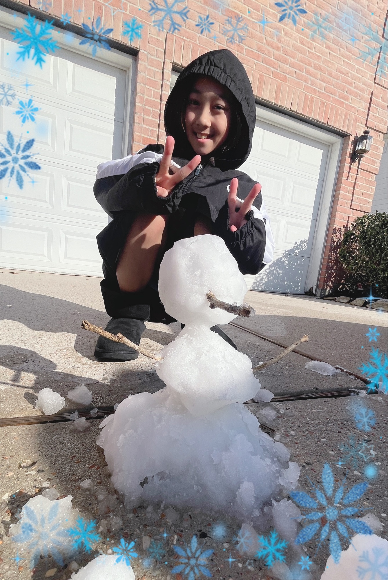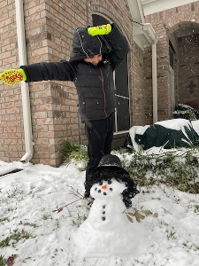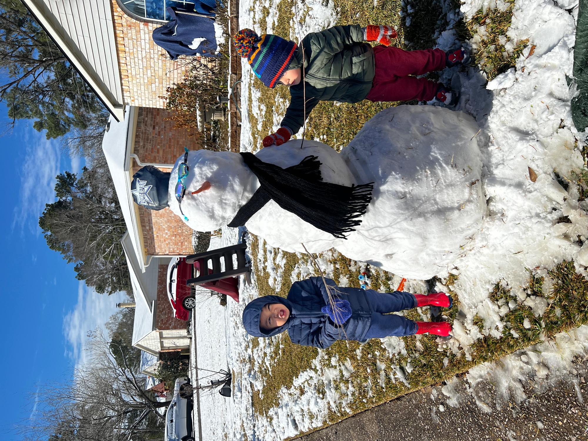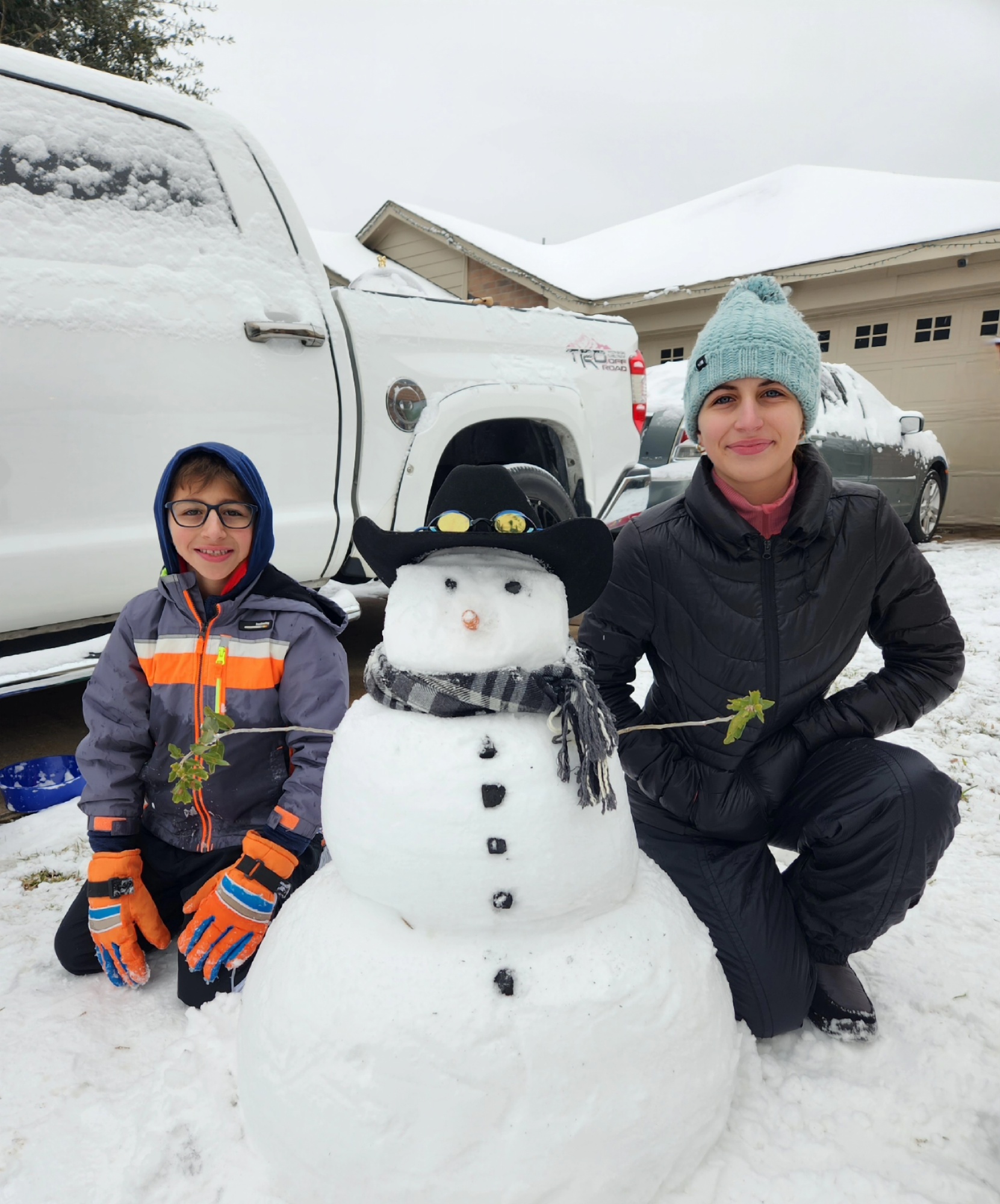 Overall Best Snowman - Gabi and Victor Campos with their classiest Texan swimmer snowman