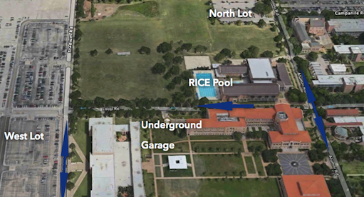 West Lot 3 is adjacent to the fields by the pool while Greenbriar Lot is on the other side of the stadium. The Early Bird/Late Bird passes have certain available hours, while the Anytime pass is valid at any time. Parking permits are available in the central garage offices across the street from the recreation center. Your name goes to the parking services and you may also present your Rice ID. There is a $30 proxy card purchase at the time of registration for a parking pass.