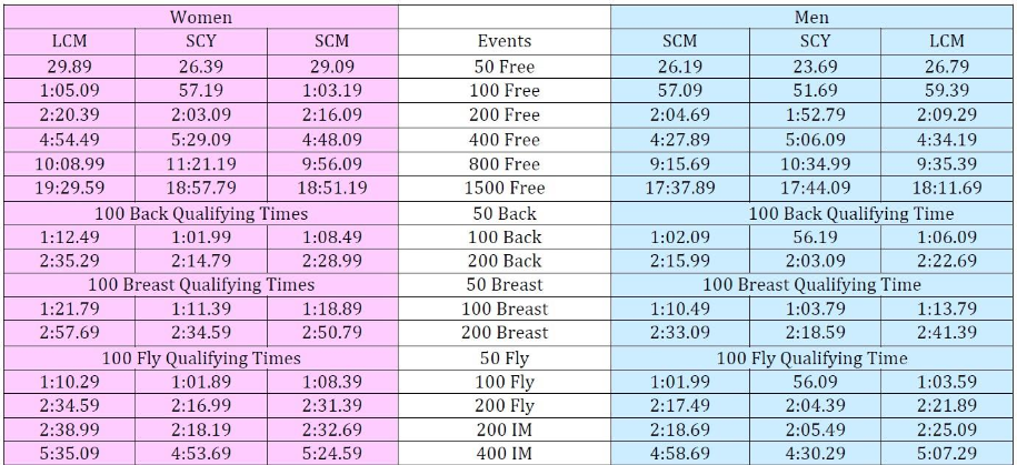 2026 Speedo Junior National time standards