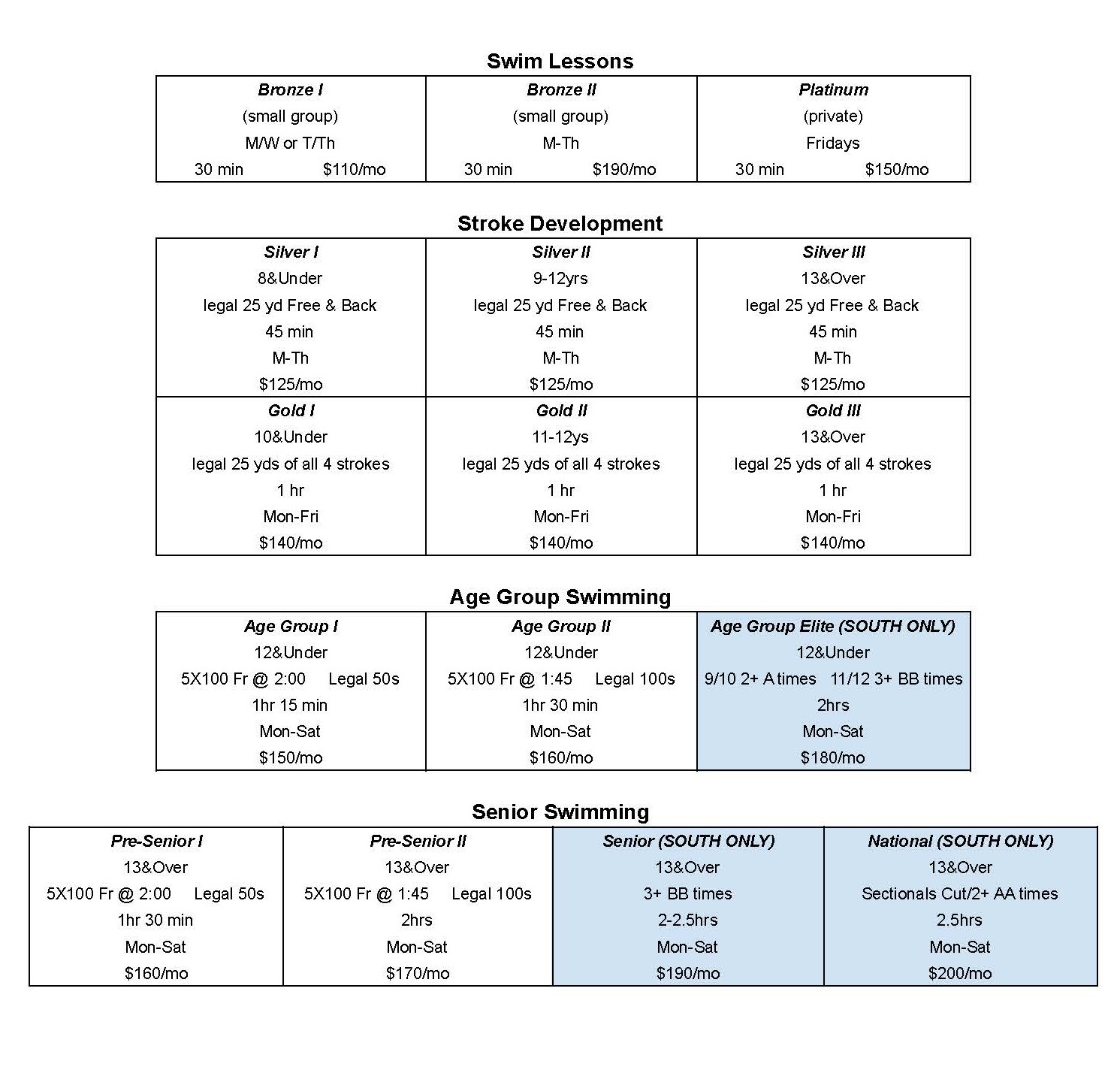 - Focus is on championship training for Sectionals and Nationals. A year round commitment to swimming both short course and long course is required to be placed in this group.