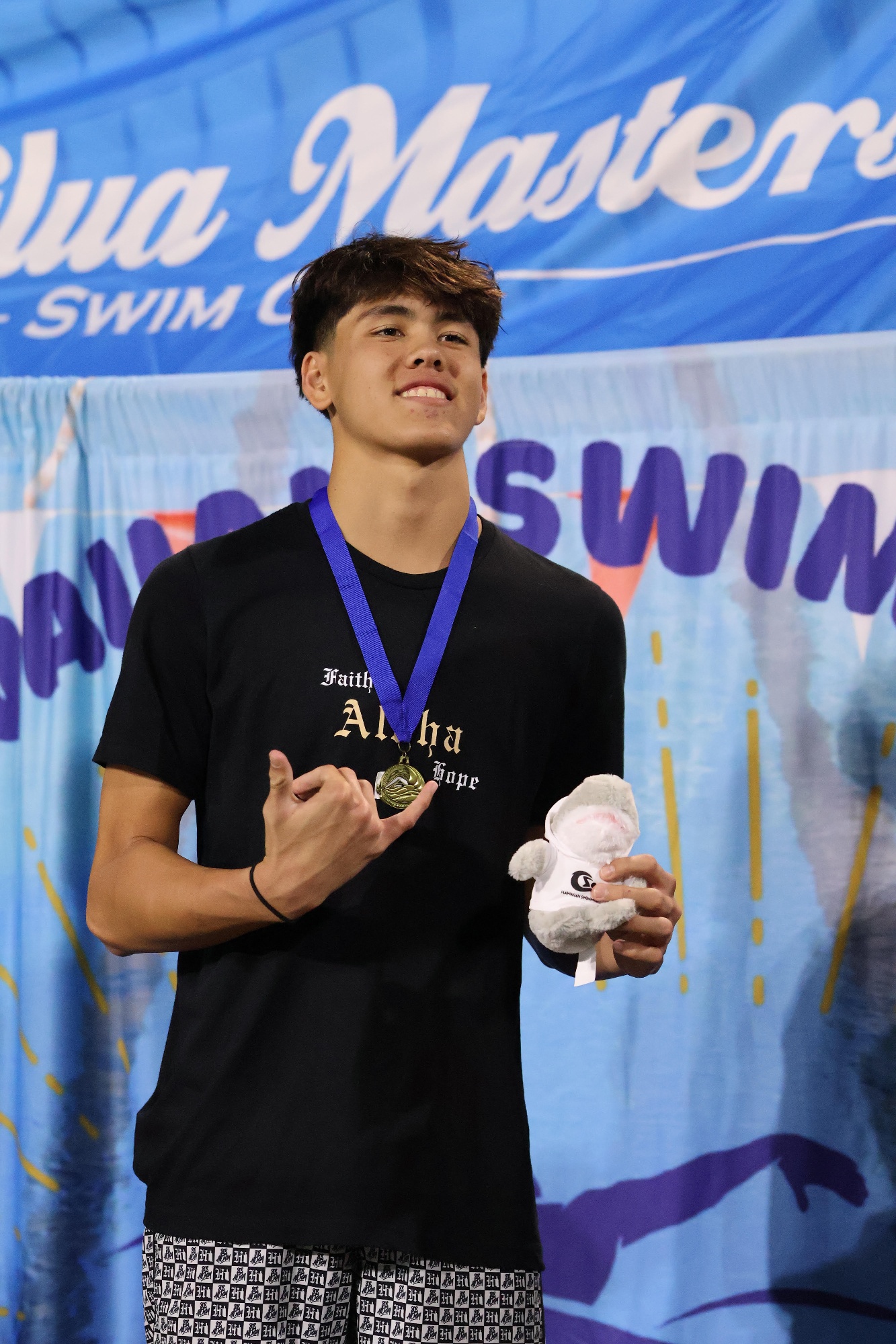 Congratulations to Cruz Storer of Lahaina Swim Club and Connor Ventura of Maui Swim Club who both broke age group records on night 1 of senior champs. In the D final of the boys 50 fly, Connor swam to a time of 24.55 breaking the previous 11-12 boys record of 24.73. Later in the session, Cruz went on to win the 100 back A final in a time of 48.96, breaking a 24 year old record. In the process, Connor established the second fastest time in the country for 12 year old boys this season with Cruz logging the 3rd fastest time in the country this year for 15 year old boys.