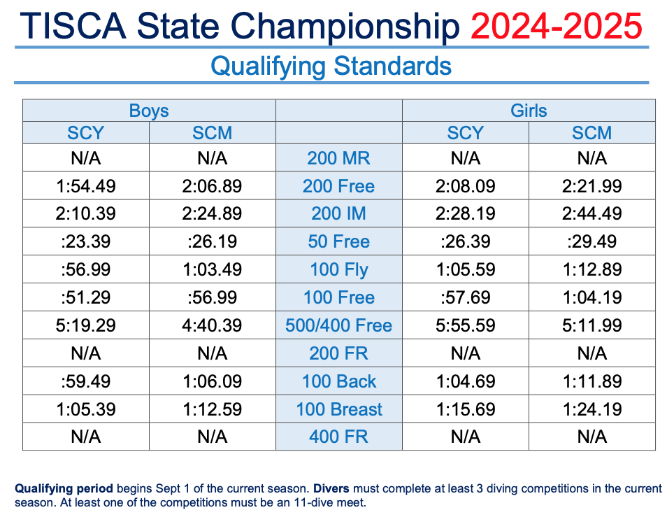 Following TISCA rules, the Shelby County High School Swim League will be only open to 9th through 12th graders. No 7th & 8th graders will be allowed to swim, even exhibition. No combining teams. Swimmers must attend the school they represent. Exception: Homeschool students may swim for a public school they are zoned for.