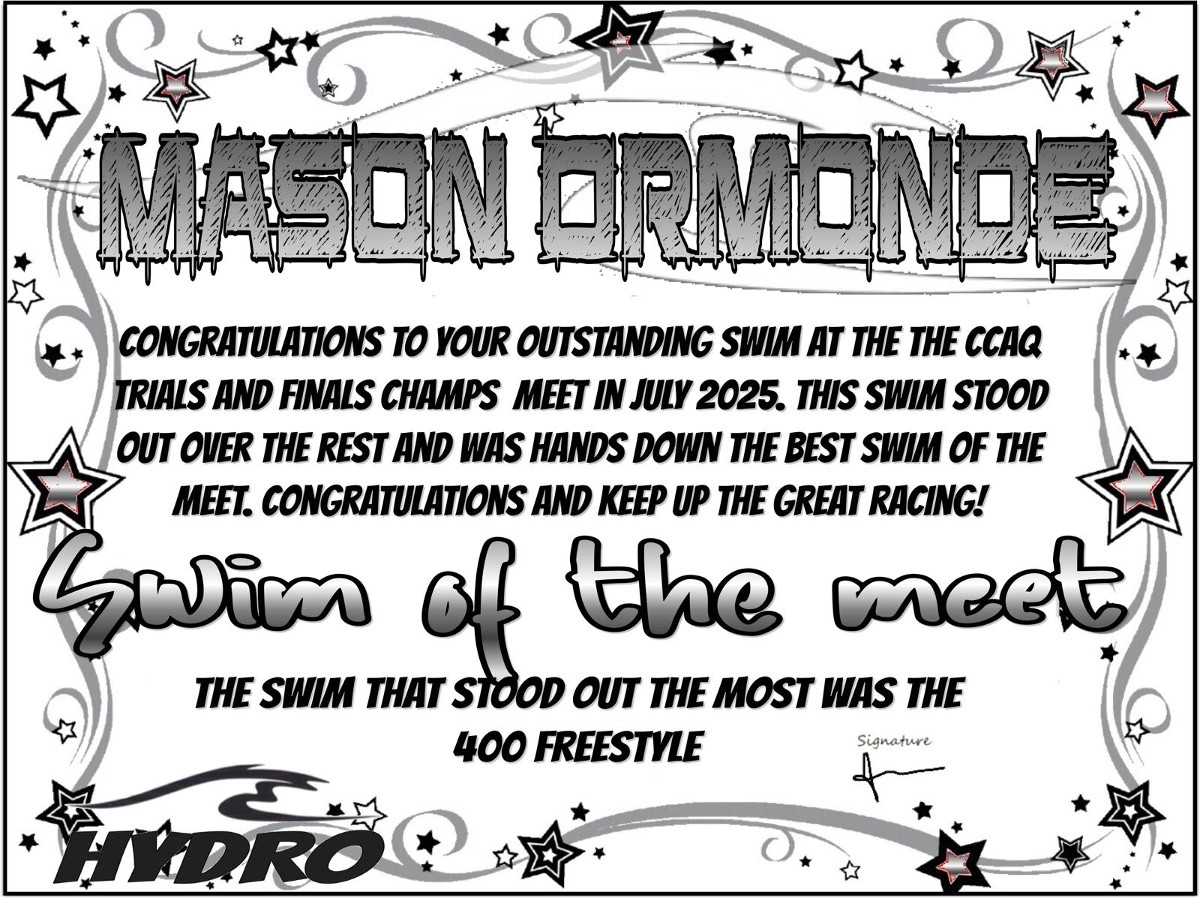 Swim of the meet for the CCAQ meet was Mason Ormonde with his first place finish in the 400