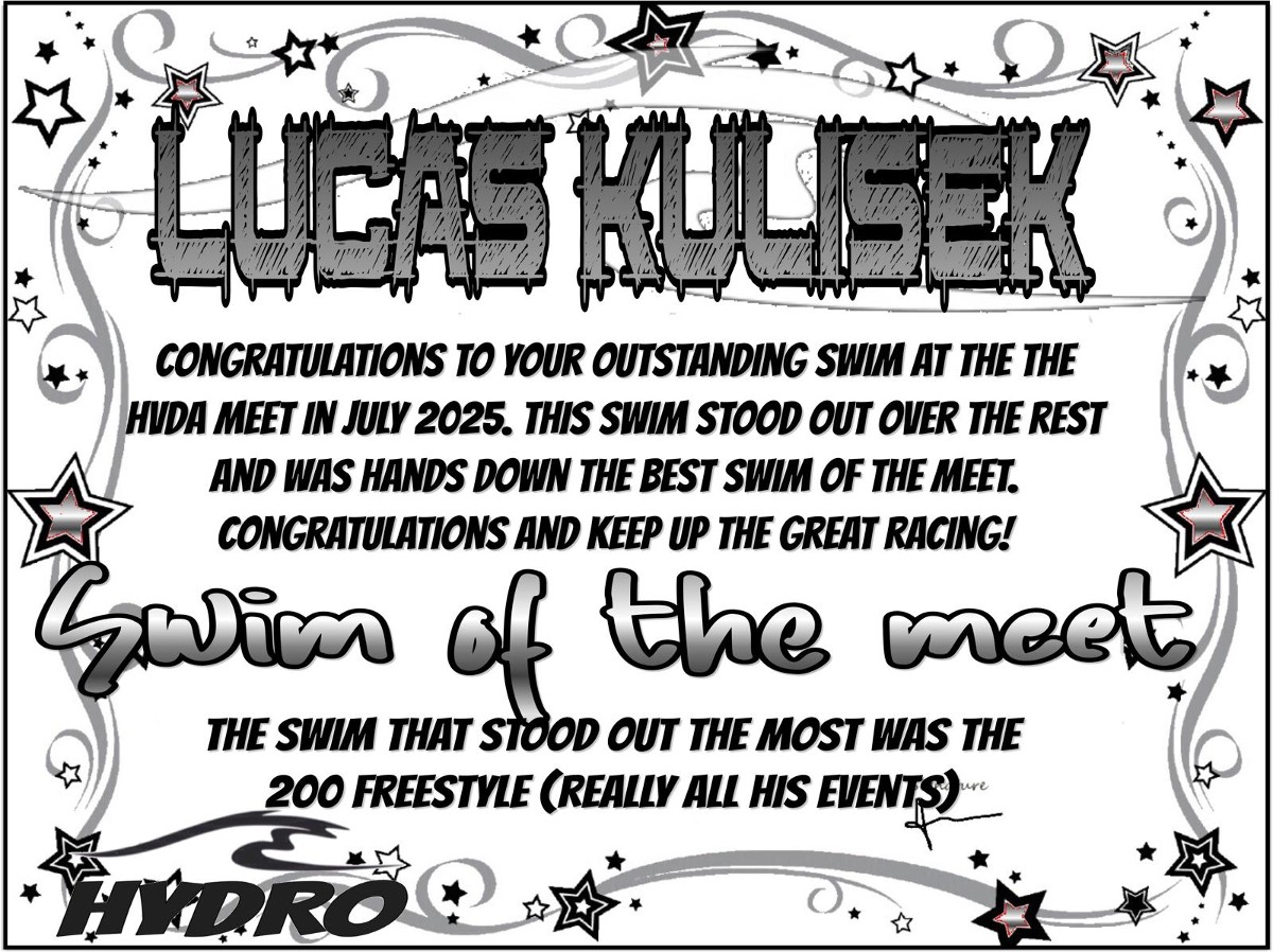 Swim of the meet for HVDA was Lucas Kulisek and his 200 freestyle. Really his whole meet but this is the one that stood out the most.