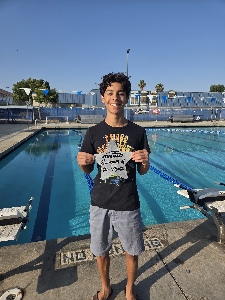 June Swimmer of the month: Jonathan Perez. He had 2 great swim meets. He swam on the 15 and older relays at JAGs. At his first individual club swim meet, he got 2 B cuts and 1 BB cut. He had two 1st place finshes and two 2nd place finishes.