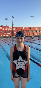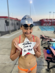 This is Kenzie Donia. She is our swimmer of the month for April 2025. She works had at practice and has fun at the same time. I am currently 12 years old but turn 13 this week (end of May) my favorite food is Sushi and my favorite thing to do in my downtime is read. In school I would have to say I like Computer science the best and my favorite color is teal. I excel in Breaststroke. (It's my favorite) and I'd like to thank Coach Tyson for...