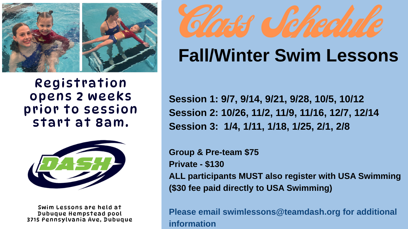 Registration includes DASH Master's membership which provides access to the pool during Master's training times.