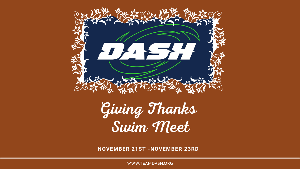 Good evening, Team DASH, Can you believe November is already here! That means our first meet of the fall season is approaching fast. We are currently less than 3 weeks away from our Giving Thanks Meet, and we need your help for a successful meet. Hosting a meet gives our team much needed funds to keep our club running. It also gives an opportunity to our swimmers to be able to compete in their home pool. It’s fun to see our swimmers meet friends from other teams and build that...