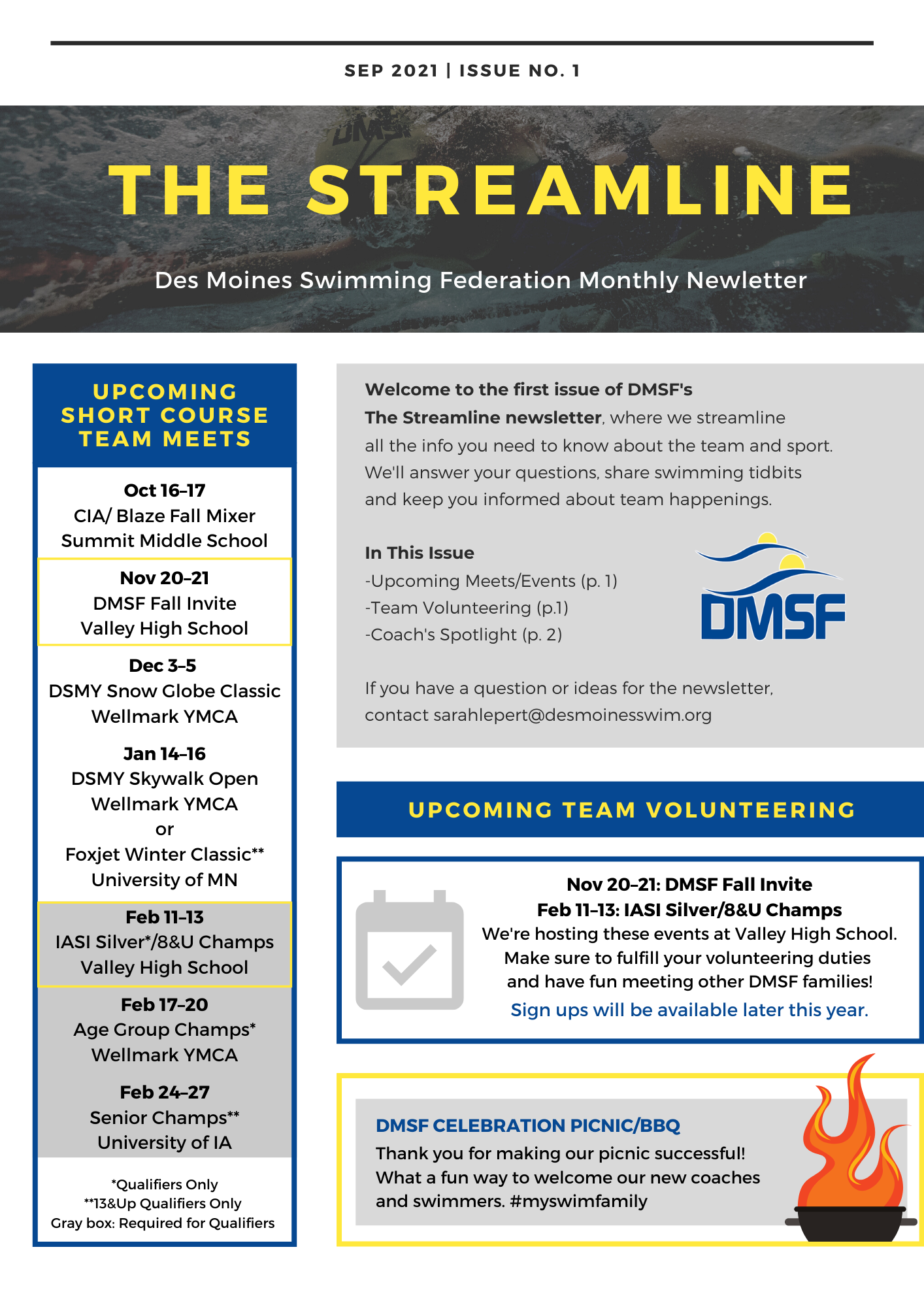 DMSF's The Streamline Newsletter is now available. Learn about upcoming short course dates, Coach Ethan's goals for the team and more.