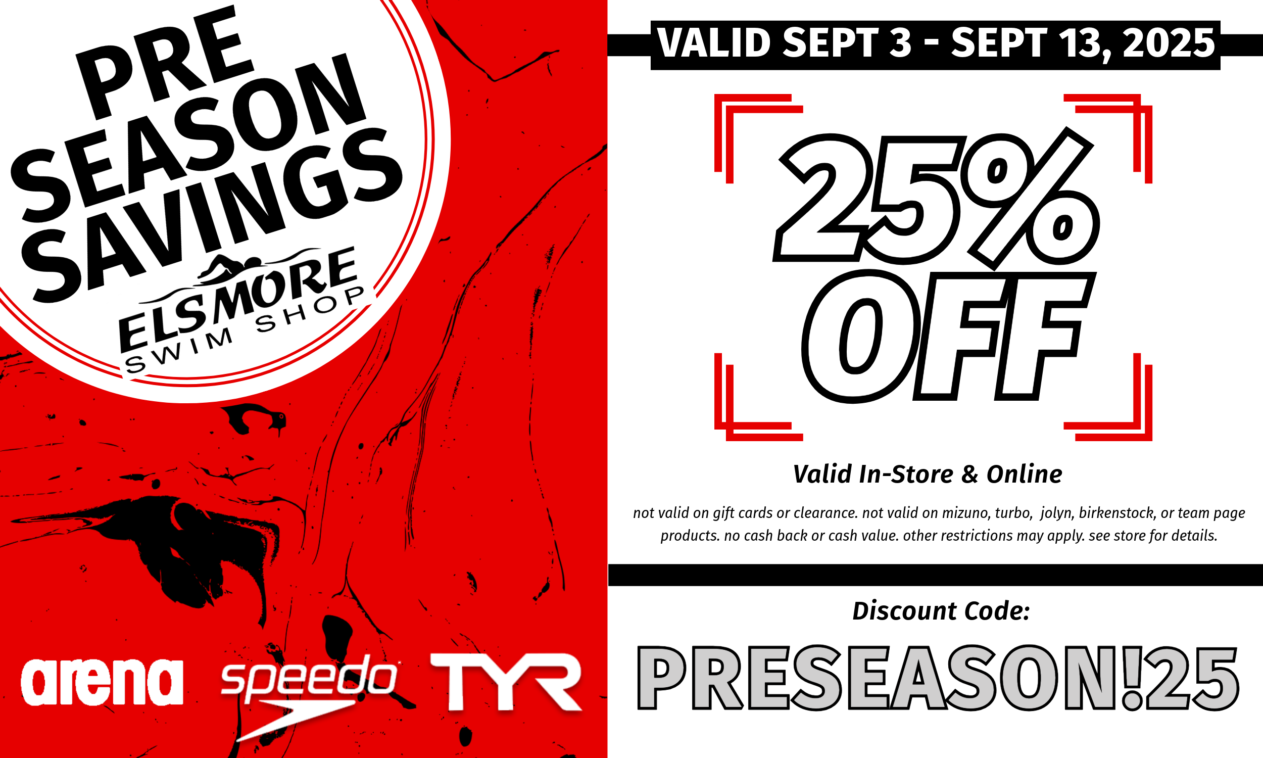 - A preseason coupon, valid in-store and online, starts September 3-13. Enjoy 25% off goggles, backpacks, full price training suits, etc…